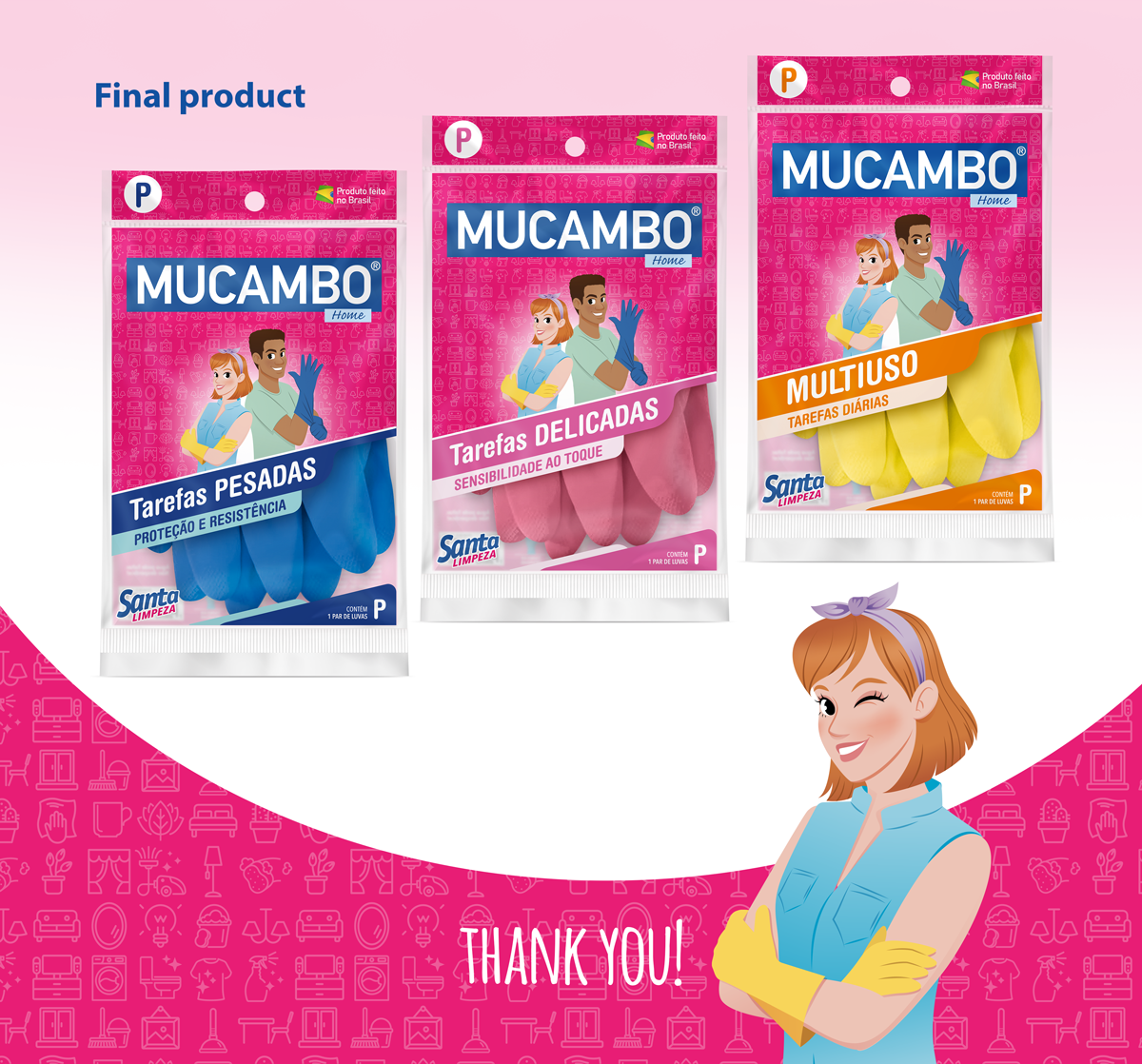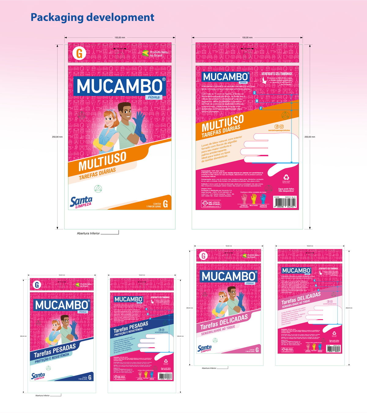 Character creation and packaging development based on the current identity of Santa Limpeza gloves.
