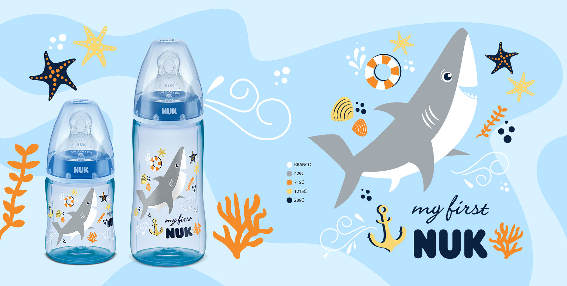 Ilustrações criadas para as novas decorações de mamadeiras da linha My First da, NUK